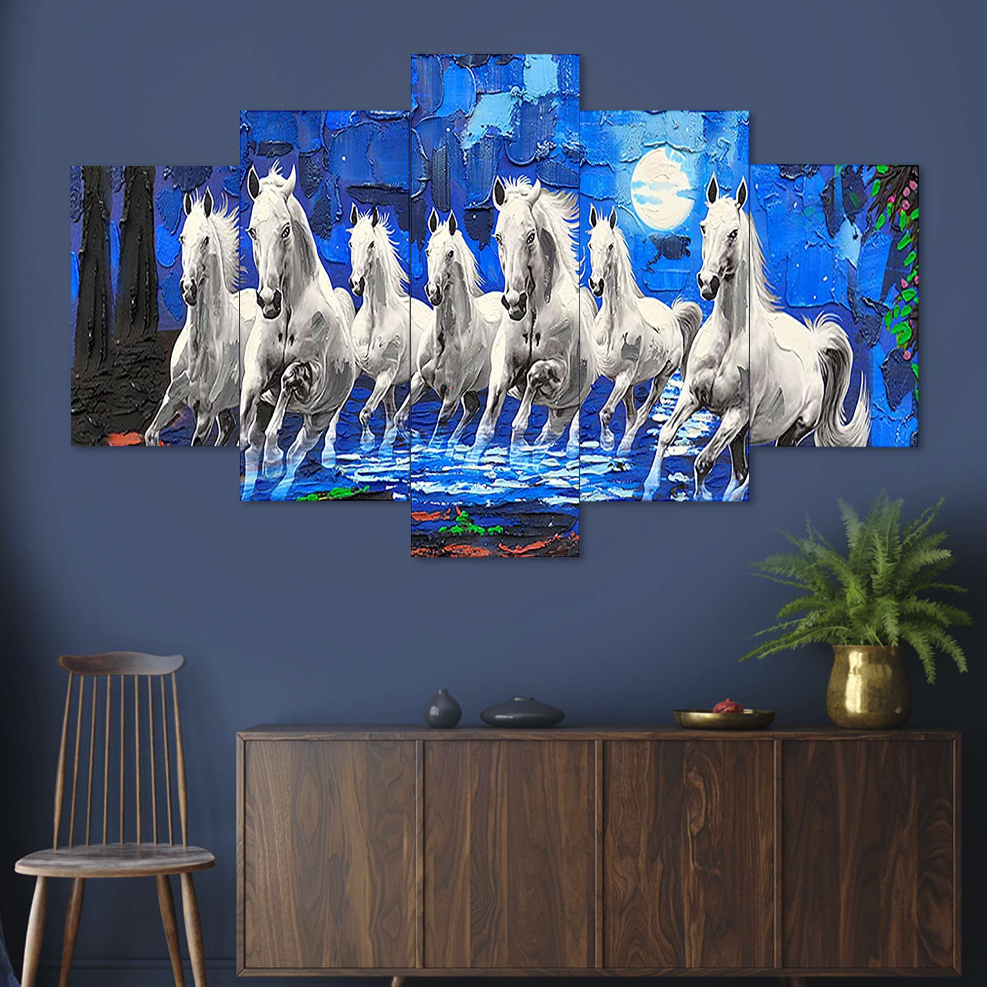 Horse Set of Five 3D Framed Paintings for Wall Decoration – Ideal for Home, Living Room, and Bedroom (125 x 60 CM)